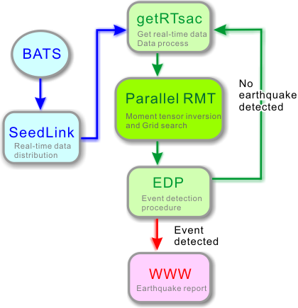 flowchart of real-time moment tensor monitoring system.